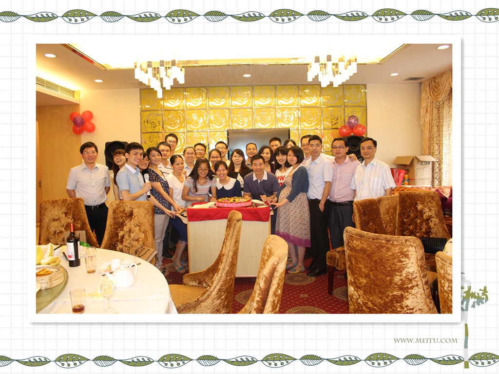 緣分是長長久久的相系,朋友是一生一世的牽掛,時光帶不走你我的笑容,歲月沖不淡你我的快樂。是光華提供這樣一個平臺,讓我們彼此相知,讓我們記住這個快樂和充滿溫情的生日會,讓我們的友誼跟隨著工作一起升華,讓陽光燦爛的日子永遠伴隨光華人的每一天!最后,再一次祝福壽星們在未來的歲月里,工作順利,闔家歡樂!