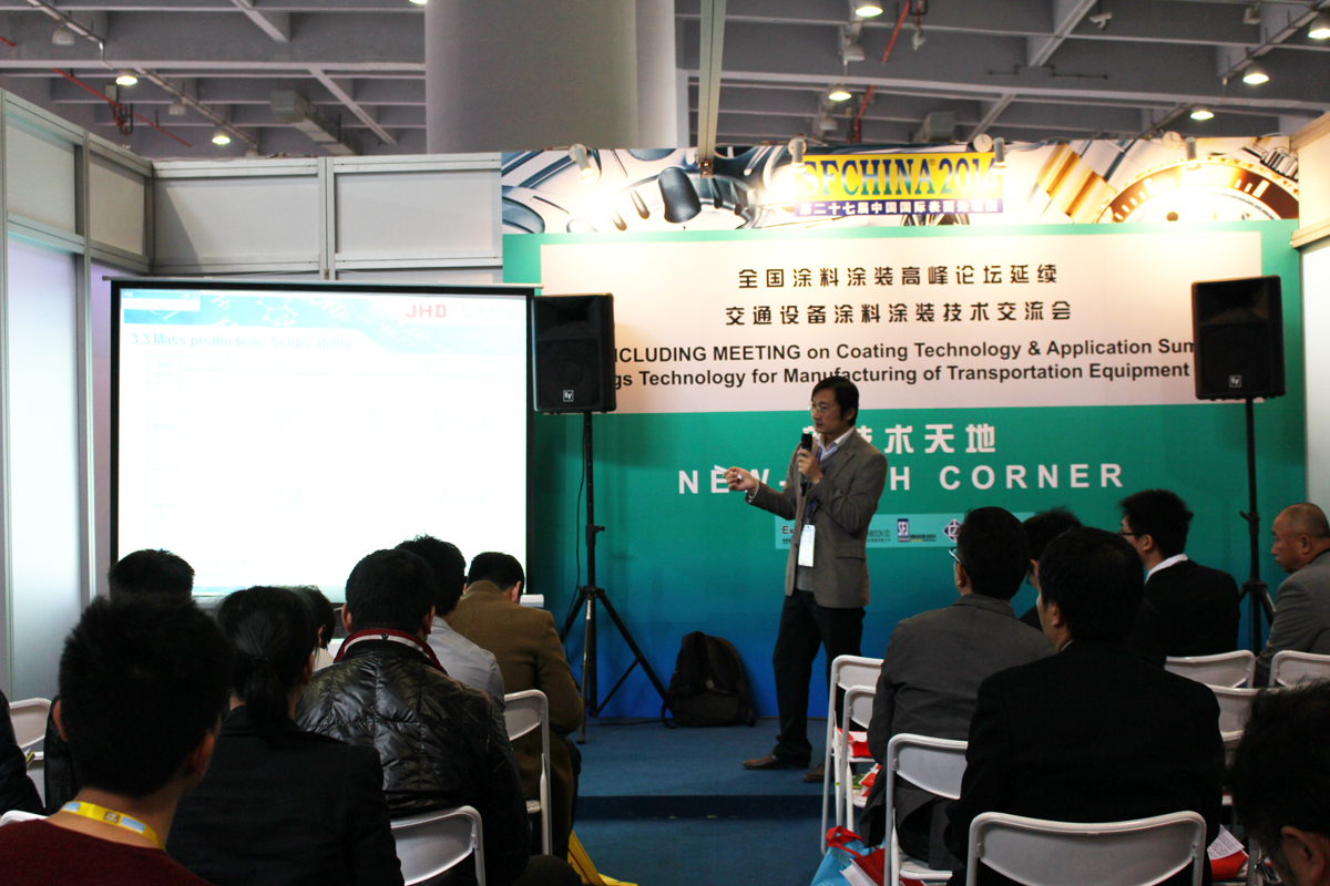 在展會12月4日舉行的新技術天地中,公司任秀斌博士為現場觀眾帶來了《純錫電鍍液在被動元器件生產中的應用》報告,并與觀眾共同探討了相關技術問題,得到了熱烈的反饋。