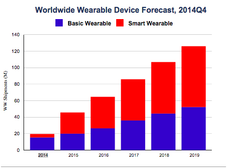 隨著Apple Watch的發(fā)布,智能可穿戴設(shè)備將迎來重要的一年。Apple Watch點(diǎn)燃了可穿戴設(shè)備市場(chǎng),許多廠商都渴望來分一杯羹。另外,非智能可穿戴設(shè)備并不會(huì)消失。事實(shí)上,該市場(chǎng)將持續(xù)增長,因?yàn)樵S多領(lǐng)域都需要簡(jiǎn)單的,一次性使用可穿戴設(shè)備。