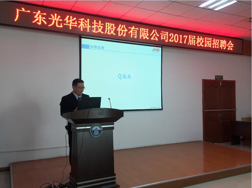 10月10日,光華科技圓滿完成2017校園宣講會武漢之行。在為期兩天的時間里,光華科技通過武漢大學及武漢工程大學兩場宣講會,與莘莘學子們進行了深入的交流。 宣講期間,光華科技深切感受到了江城學子們良好的精神風貌。不少同學特意一早趕到了現場,在宣講環節中踴躍提問、展示自我,方方面面體現了自己成熟的職業觀。