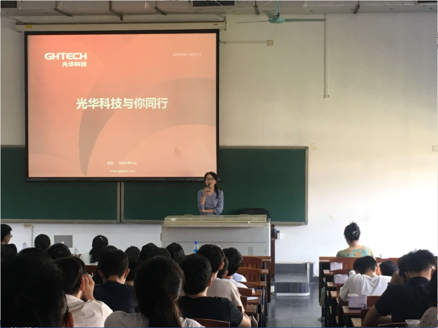 隨后,在廣東工業(yè)大學(xué)的輕工化工學(xué)院新生入學(xué)典禮上,光華科技優(yōu)秀管培生代表與新同學(xué)進行了“光華科技與你同行”的分享,展現(xiàn)了光華科技的企業(yè)風采,介紹了光華易購平臺為新同學(xué)未來學(xué)習(xí)中帶來的幫助。