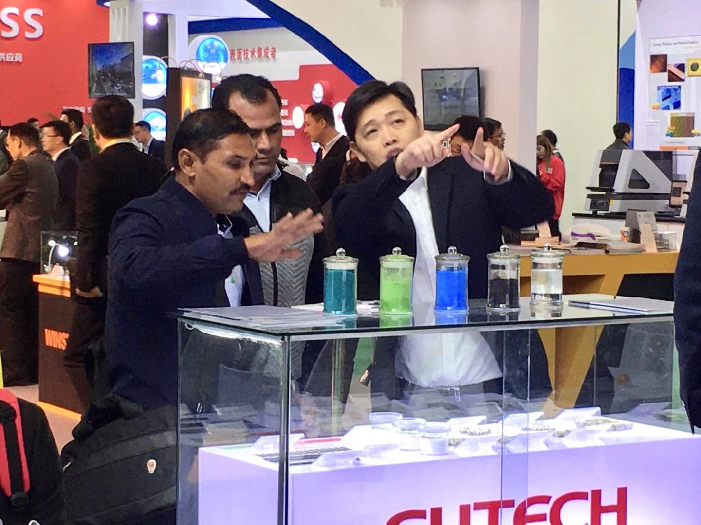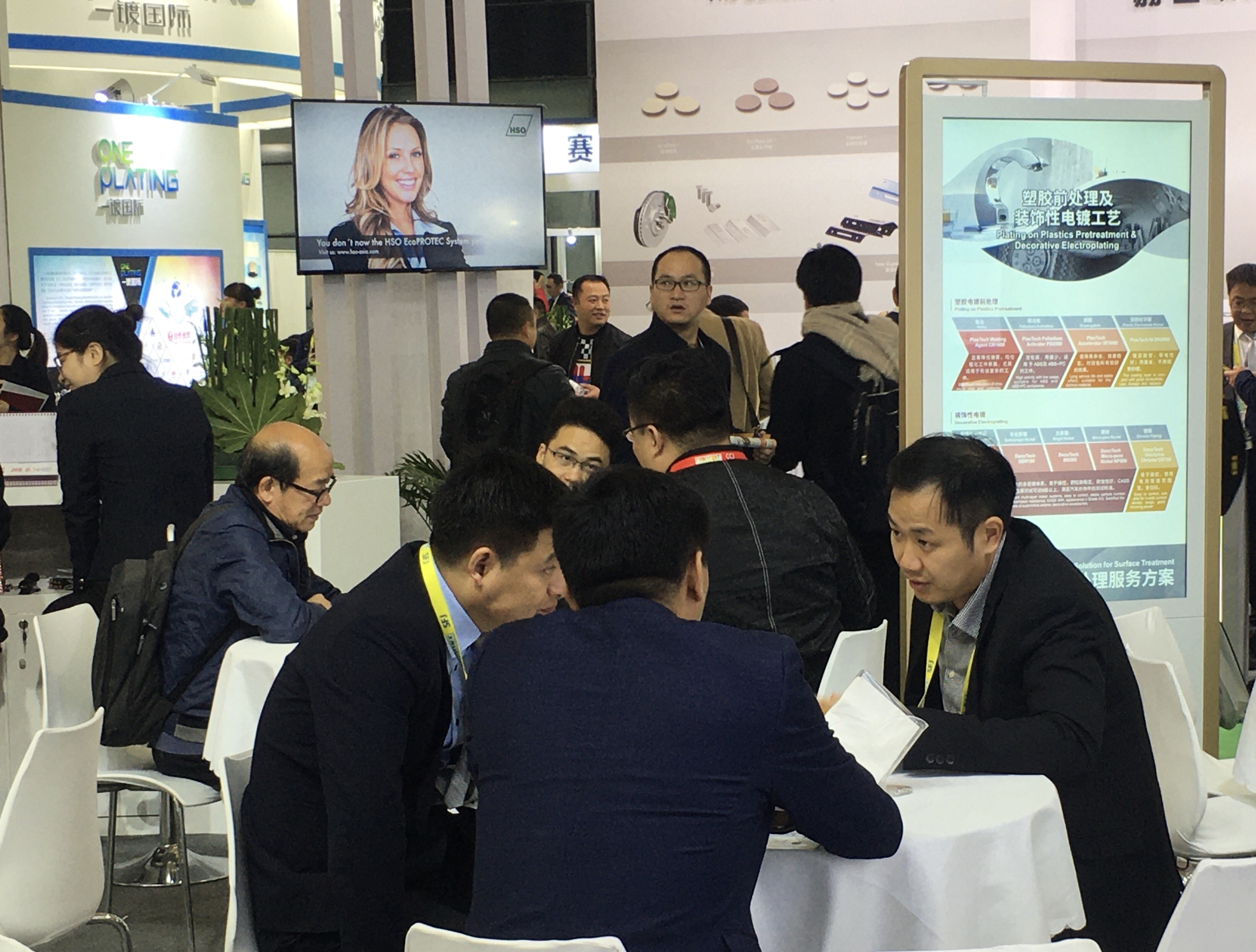 本次光華科技也帶來了專為塑膠電鍍前處理、功能性電子電鍍、裝飾性電鍍、化學鍍等工藝過程深度配套的金屬化合物、電鍍添加劑、金屬陽極及其他專用化學品四大類產品,現場還有資深的技術人員與大家交流技術經驗和解答疑難問題,展位上熱鬧非凡。