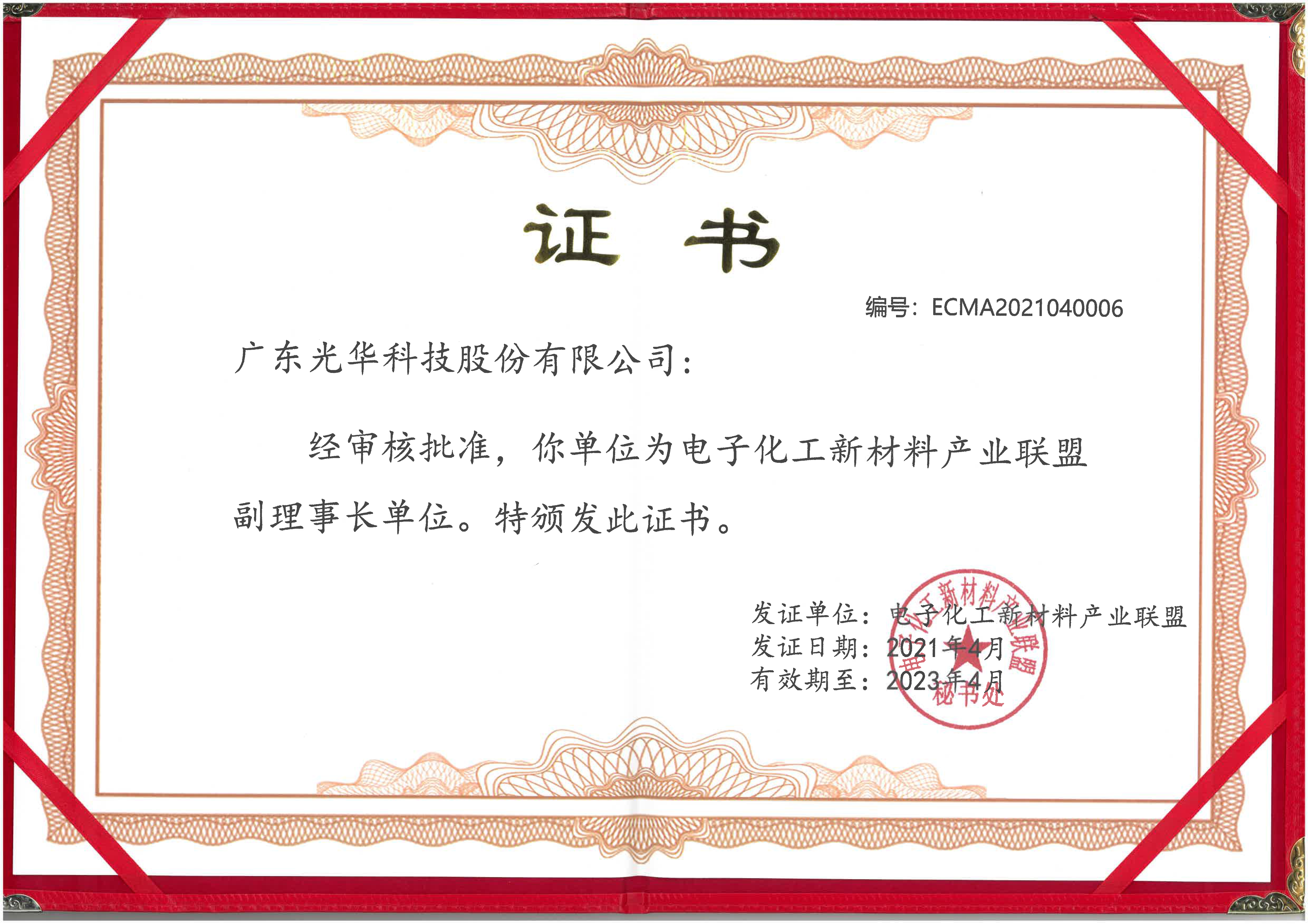 會(huì)議召開了電子化工新材料產(chǎn)業(yè)聯(lián)盟一屆六次理事會(huì),聯(lián)盟秘書處向大會(huì)作了聯(lián)盟一屆理事會(huì)工作報(bào)告,大會(huì)選舉產(chǎn)生了新一屆理事會(huì),光華科技蟬聯(lián)聯(lián)盟副理事長單位,光華科技董事、光華科技研究院總經(jīng)理?xiàng)顟?yīng)喜當(dāng)選聯(lián)盟副理事長。