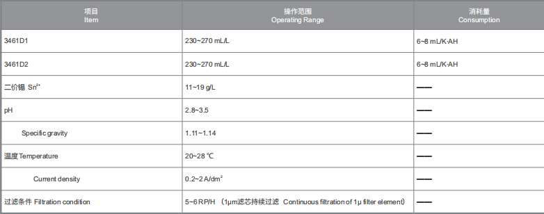 3461D is a pure tin electroplating potion exclusively designed in accordance with the barrel plating characteristics of such electronic products as passive components. It can ensure uniform and dense tin coating while ensuring the electroplating efficiency, thus ensuring excellent weldability of the plating workpiece. It is applicable to barrel tin plating of chip capacitors, resistors, electric induction products and other electronic.
